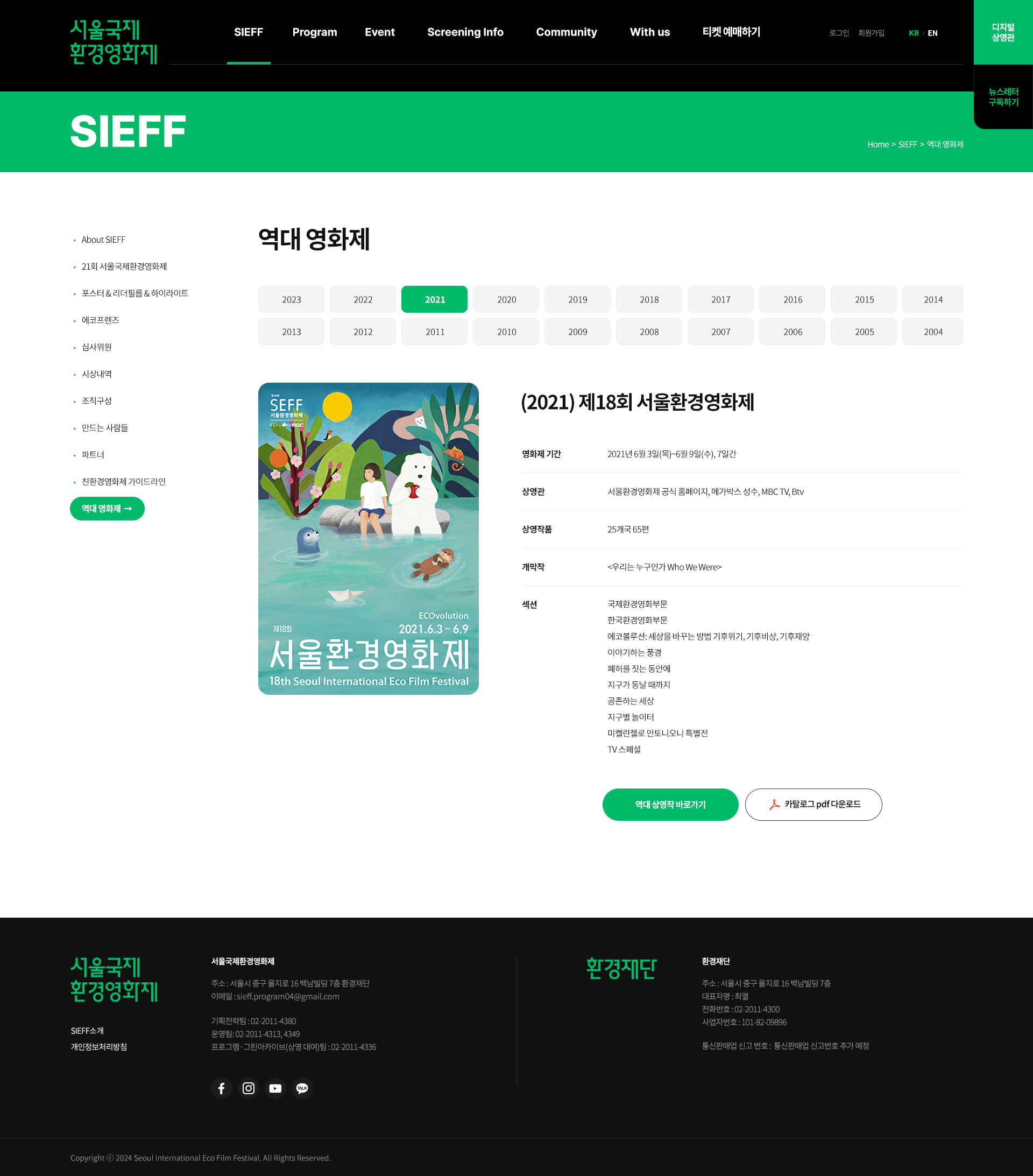 서울국제환경영화제는 환경과 인간의 공존이라는 철학을 기반으로, 다양한 세대와 주체가 참여하는 복합형 영화제입니다.
