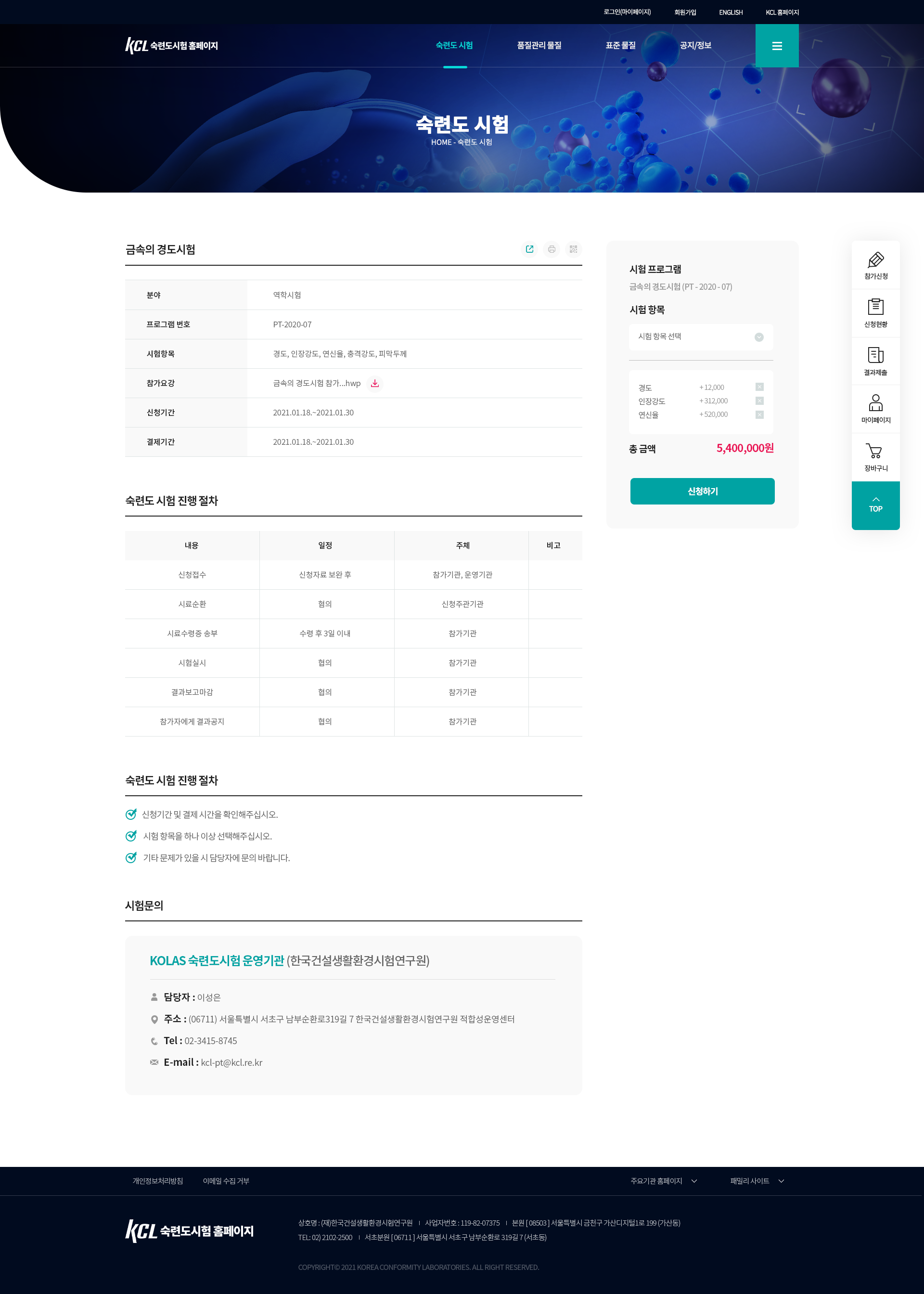 KCL 숙련도시험 통합 웹사이트 구축 프로젝트는 한국건설생활환경시험연구원의 시험 운영 정보와 신청 동선을, 국내외 사용자가 다양한 환경에서 일관되게 탐색할 수 있도록 설계된 반응형 홈페이지 제작 사례입니다. 국제표준 기반의 경영방침과 기관 신뢰를 콘텐츠 위계에 자연스럽게 녹여내고, 시험 신청·공지·운영 안내·수료증 확인까지 하나의 흐름으로 안정적으로 연결되는 UX 구조에 무게를 두었습니다. 국문·영문 통합 구조로 정보 접근성을 균형 있게 확장하여, 국내 사용자에게는 웹 전문성 있는 신청 경험을 제공하고, 글로벌 이해관계자에게는 시험 운영의 기준과 연속성이 과장 없이 명확히 이해되도록 구성했습니다. 그 결과, 검색 광고 유입과 SEO 확장까지 고려된 기관 홈페이지 전문 제작 업체의 반응형 웹사이트 구축 레퍼런스로 완성되었습니다.통을 지원하는 통합 디지털 플랫폼으로 구축되었습니다.